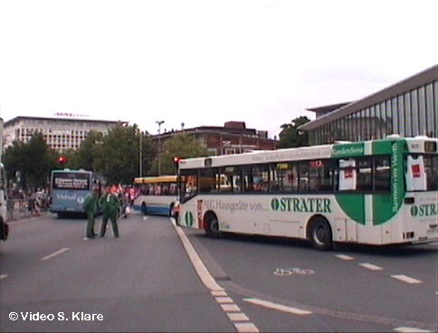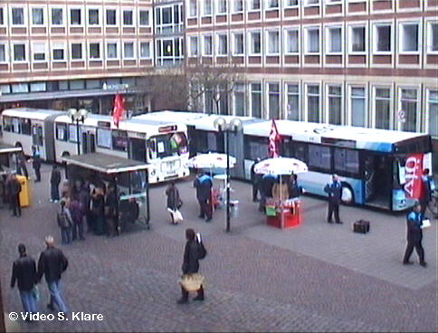 Seit etwa 14 Uhr ist die ÖTV-Aktion beendet, die Busse fahren wieder. Der Grund: die CDU hat eingelenkt, und will empfehlen, den Privatisierungsbeschluss des Stadtwerke-Verkehrsbetriebes um einen Monat aufzuschieben. Bis dahin wird der Bundesrat dann auch das Vergabegesetz, das die zuküftigen Service- und Sozialstandards für Verkehrsunternehmen regelt, verabschieden.