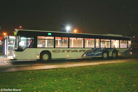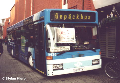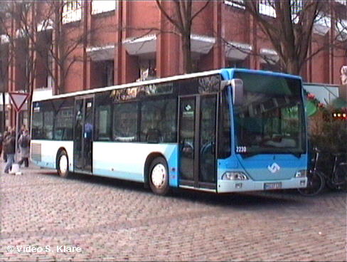 | Auch in diesem Jahr steht wieder ein Gepäckbus an der Klemensstrasse. War es bislang der Stadtwerkewagen Nr. 9435, wie hier am 22.12.2001, so steht seit dem 13.12.2002 nun der einer der neuen MB O 530 Citaro (Wagen 2230) zur Gepäckaufnahme bereit. |