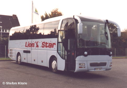 | Zu Vorführzwecken dient dieser MAN Lion´s Star, der auf das Kennzeichen MS-R 1002 zugelassen ist. Auf dem Bild steht das Fahrzeug am 02.10.2002 auf dem Gelände der MAN-Niederlassung Münster. |